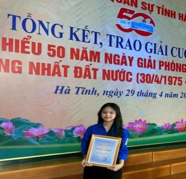 NGUYỄN THỊ HẢI YẾN Giải Nhì cấp tỉnh, giải C cấp Bộ tư lệnh QK IV Cuộc thi "Tìm hiểu 50 năm Ngày giải phóng miền Nam, thống nhất đất nước"; NH: 2024 – 2025 GVHD: Trần Thị Thanh Tâm |