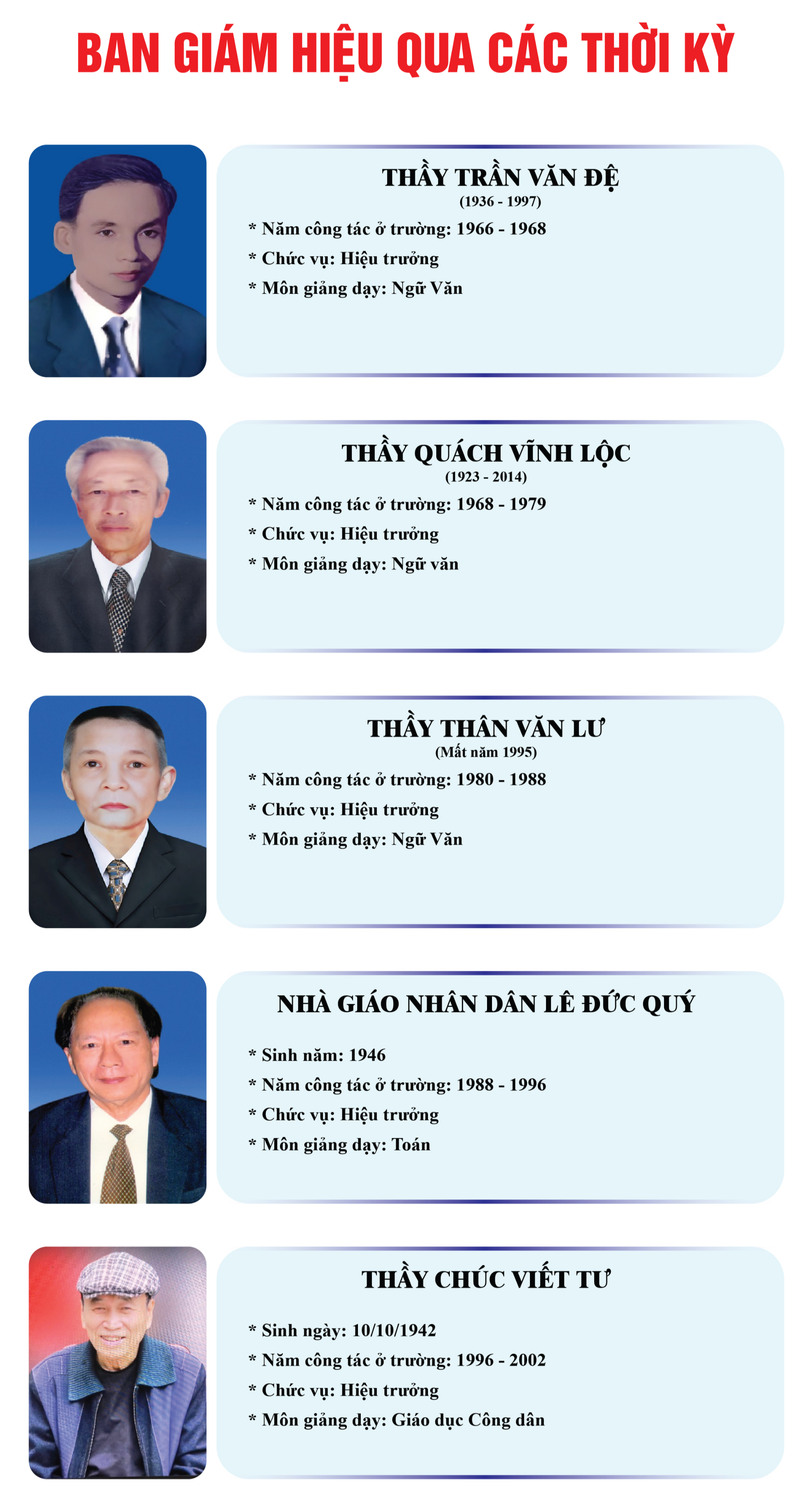 Thế hệ Cán bộ Giáo viên - Nhân viên Trường THPT Lý Tự Trọng